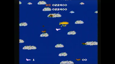 Once again, the sound effects have been changed, and this time, they removed the music entirely, which considering the music quality before, is probably for the best. And hey, they put the Hi Score where it actually needs to be... though they also simplified the Life and Enemy meters to just the number left of each. The clouds have also been simplified to just a static background design, with the ability to fly behind certain clouds completely removed. Besides that, not too shabby a port for not too shabby a game.