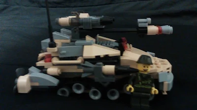 Design: The designs of the models are distinctive, but questionable. They seemed to have a relative vision of what they based the models on, but not so much the idea of how to execute the idea. Sometimes we get a model whose function is clear, like the Missile Launch Vehicle, and sometimes we get the Explosive Aircraft guns, where I can't even tell if it's right-side up. I don't know if this was due to a lack of reliable models or just they were given a limited amount of pieces to create a mini-set out of. Still, each one at least looks like something and all look like they belong in a war zone, so they got the idea down of what they were building. And again, I have no complaints with the Amphibious Camion.