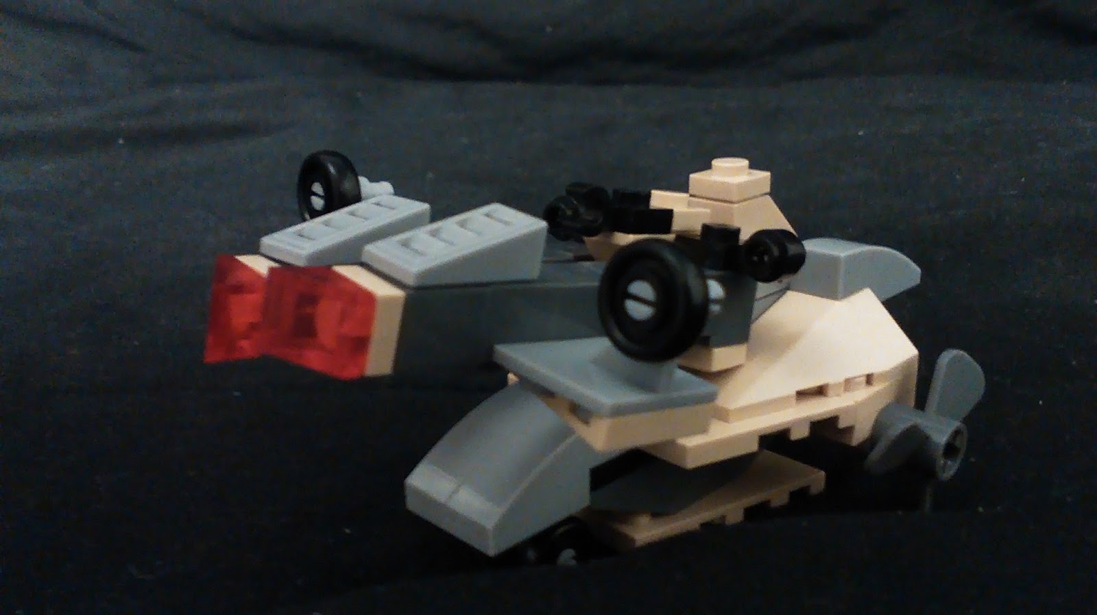 It's basically the other vehicle with the front part cut off. On the plus side, that means much easier R2-D2-style steering and movement. On the minus side, a minifig can't ride this into battle without putting its head in front of where the missiles' flame jets would be. The missiles are also a lot bigger on this than the other form, so let's see if they can hit a target from a much further distance.