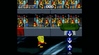 Jelly Flop: Somehow the most straightforward yet confusing event on this console... Every time Spongebob/Patrick lands on the jelly, you press the A button to shoot them higher. While in the air, you just waggle the joystick in different directions to build up a combo for points, which can be broken if you land while performing a combo. You can alternatively perform poses holding A and a direction, which give you a few points, but you get fewer and fewer the longer you hold it, so you need to constantly switch between poses AND combos. Plus you get bonus points for bouncing on your head and switching back and forth between the jellies. ...I think.