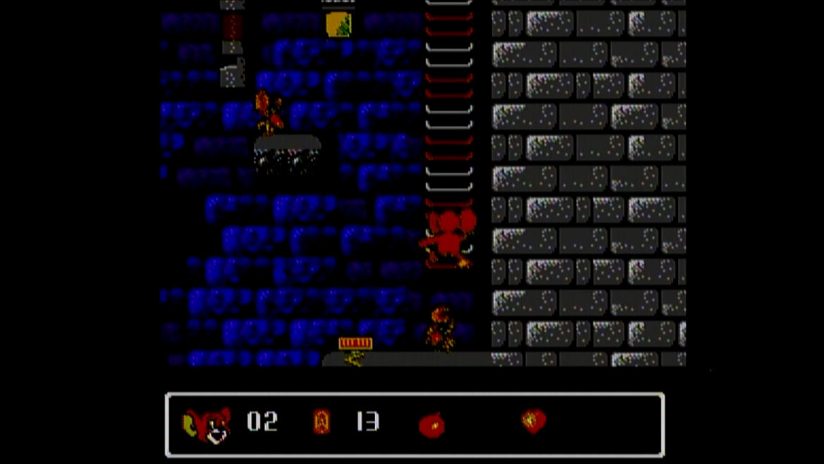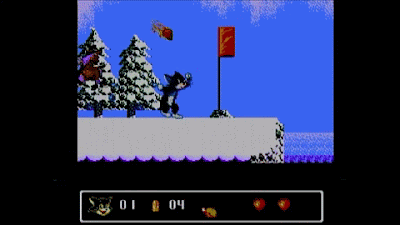 Music & Sound: The music sounds cartoonish enough, and better than the bass-induced headache that was most of their Titanic project, but still forgettably bland. It's again a string of notes strung together in a rough approximation of what it's trying to imitate; in this case, fast cartoon scores. While they fit the environment and tone, I couldn't hum them if you asked me. I even had to go back and listen to the footage to make sure it wasn't all the same track. And no, unlike Titanic and Donkey Kong Country 4, there's no 8-bit rendition of the Tom and Jerry theme... The sound is again minimal, to the point it's not worth taking about. There's an effect for throwing stuff(which sounds like a highly compressed "whoosh"), a *ding* effect for picking stuff up, and an explosion effect for defeating the bosses. That's it. It's the bare minimum for games, and what is used in every other 8-bit game ever. So while the music and sound aren't distracting, they're not a strong point for the console either.