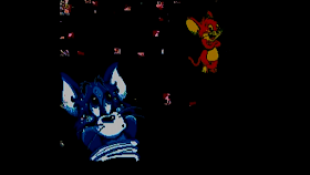 The second title screen is a recreation of the Chuck Jones-era of Tom and Jerry, complete with the title font and Jerry floating down into the "Y". ...Except, they replaced Tom meowing in a parody of the MGM lion with their version of Tom saluting, quickly looking left/right, then whistling. ...I guess he was checking for bootleg Butch before welcoming the player to the game?