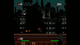 And variety is absolutely required for this stage, as it's easily the longest of all the levels. It's only used twice in the entire game, but this first example alone takes over FIVE MINUTES to complete! That may not sound like a long time, but seeing as how it's just Spider-Man web-slinging, occasionally jumping, and shooting web balls at the same robots over and over again, it becomes noticeable...