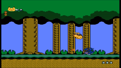 ...However, this is a glitch that will only activate if you're LUCKY! Most of the time, landing anywhere but dead center on a platform, or even walking too far towards the edge, will result in you FALLING THROUGH! This is a common bug in even licensed games of the 80s and 90s, where the programmers didn't define a wide enough area to cover each individual platform, so the same amount of solidity is given to each platform, no matter how big or small it is! It's annoying, it leads to many cheap deaths, and it's probably one of the major reasons traditional 2D platformers have fallen out of favor...